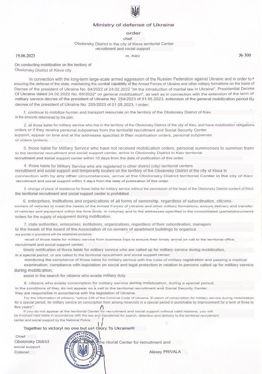 Ниже приведено изображение фактического приказа о мобилизации (на украинском языке оригинала).