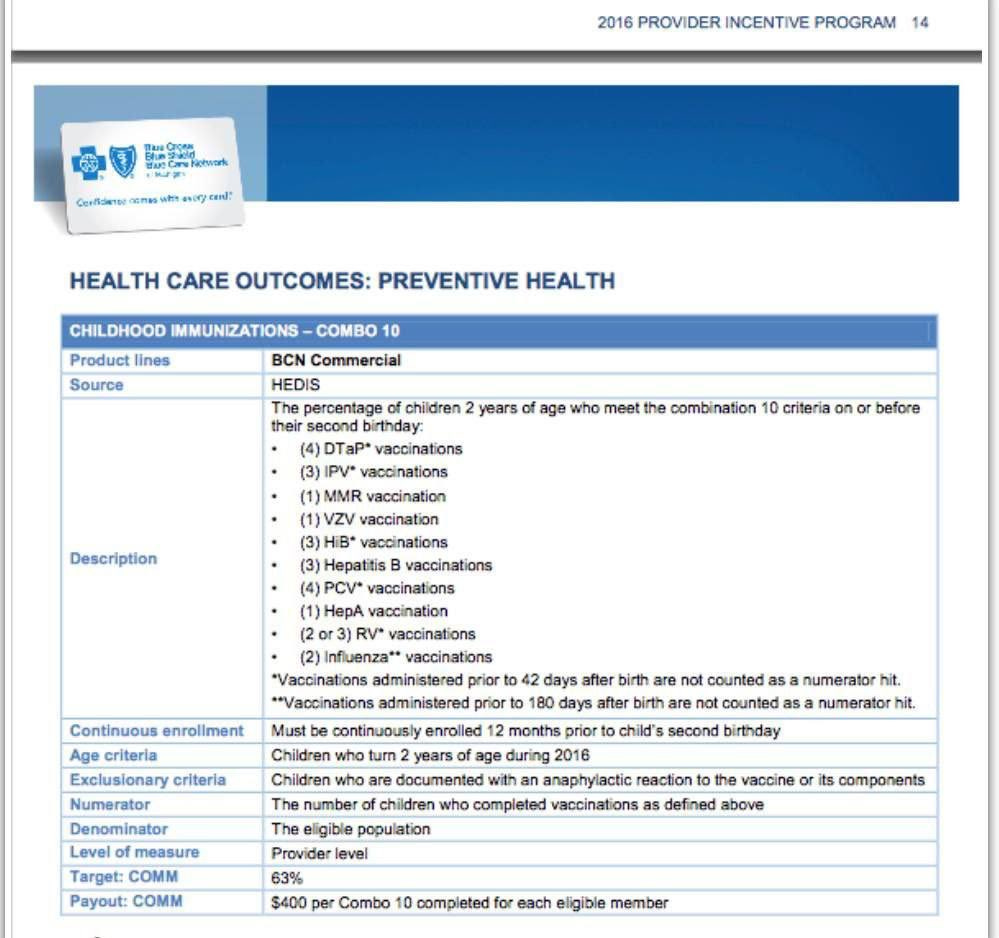 Таким образом, компания медицинского страхования выплачивает педиатрам премию в размере 40 000 долларов за полную вакцинацию 100 пациентов в возрасте до 2 лет, при этом педиатры теряют всю премию, если они не вакцинируют полностью по крайней мере 63% этих пациентов-младенцев, включая совершенно неэффективную вакцину от гриппа, которая на самом деле увеличивает риск заболевания гриппом этих детей как минимум на 26%.