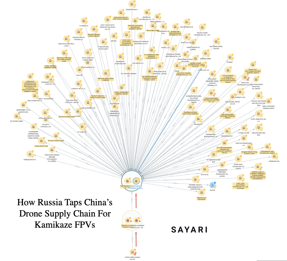 Раскрытие цепочки поставок дронов-камикадзе из России в Китай на одной карте