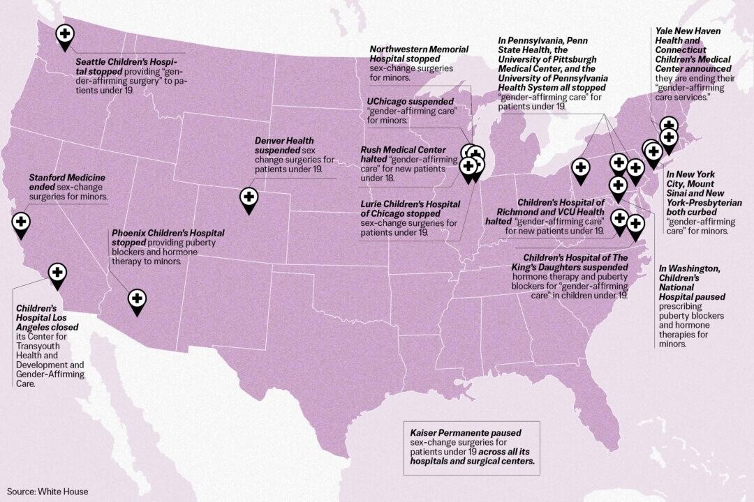 Последняя гендерная клиника, объявившая о своем закрытии, находится в Детском медицинском центре Коннектикута, где эту новость подтвердили 23 июля . Всего за день до этого закрылась гендерная клиника в Детской больнице Лос-Анджелеса. Эта клиника в Лос-Анджелесе была одной из первых и крупнейших в стране, подвергнув сотни детей инвазивным и необратимым трансгендерным процедурам, включая гормональную терапию и хирургические операции. Организация Do No Harm, где я работаю, зафиксировала около 20 гендерных клиник и программ, которые либо приостановили смену пола у детей, либо закрылись с начала года.
