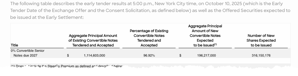 В пресс-релизе BYND говорится, что 96,92% держателей ее конвертируемых старших облигаций с ставкой 0% и сроком погашения в 2027 году согласились принять участие в предложении об обмене долга на акции, преодолев порог в 85%, необходимый для заключения сделки.
