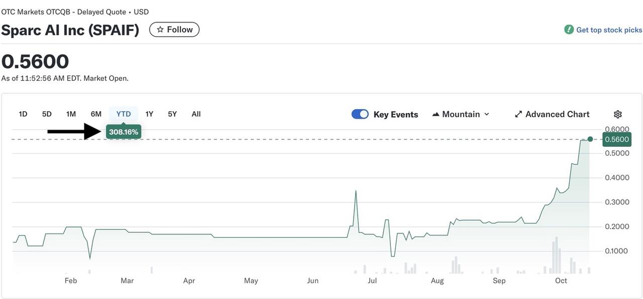 SPARC AI торгуется как SPAIF на бирже OTCQB (США) и SPAI на CSE (Канада).