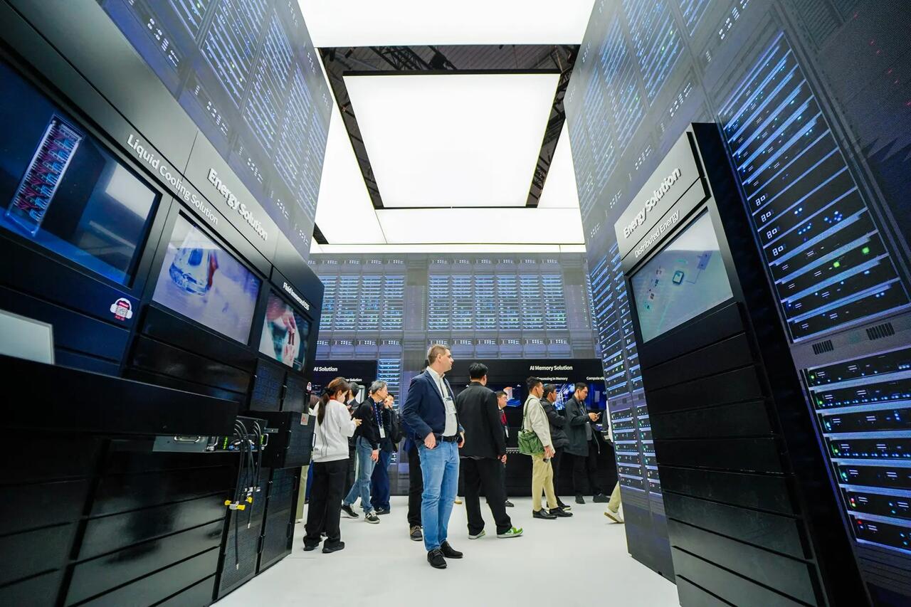 Посетители посещают центр обработки данных ИИ в SK Networks во время Всемирного мобильного конгресса, крупнейшей в мире выставки мобильных технологий, в Барселоне, 3 марта 2025 года. США и Европейский союз начали уделять внимание безопасности данных в условиях постепенного развития систем ИИ. Manaure Quinter/AFP via Getty Images