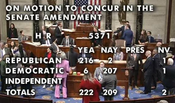 В результате голосования 222–209 6 демократов проголосовали за возобновление работы правительства, а 2 республиканца проголосовали против этой меры ( спасибо Джейку Шерману ).