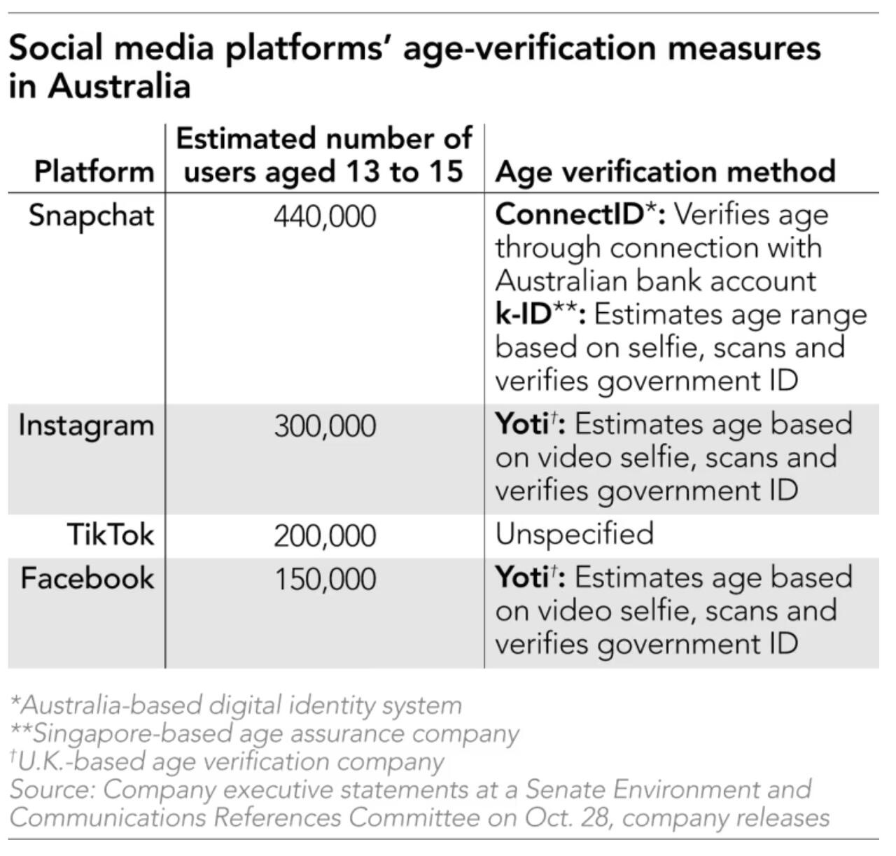 По данным Nikkei Asia , технологические гиганты, включая Meta, TikTok, Snap и YouTube, заявили, что будут соблюдать правила, хотя Google назвал эту политику «разочаровывающей» и заявил, что она «фактически сделает австралийских детей менее безопасными на YouTube» .