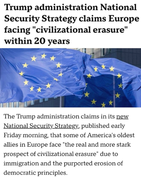 Что касается последствий того, что президент Трамп потряс мир за два дня, то в этом отчете делается вывод о том, что всемирно известный европейский историк Ладислав Земанек заявил: « Либеральный мировой порядок рушится под тяжестью собственного высокомерия, и в тот самый момент, когда Европа тонет в вызванном ею цивилизационном кризисе, Белый дом опубликовал стратегию национальной безопасности, достаточно мощную, чтобы переопределить будущее Запада... Эта стратегия - не что иное, как похоронный звон для фантастического мира после Холодной войны, созданного глобалистами, технократами и архитекторами бесконечных вмешательств... Трамп принимает то, с чем предыдущий политический класс отказывался считаться: теперь мы живем в многополярной, постлиберальной эпохе... Идеология пробуждения потерпела крах... Нации возвращаются... Идентичность имеет значение... Границы имеют значение... Суверенитет имеет значение... И США, когда-то измученные и отвлеченные зарубежными злоключениями, снова реорганизуются вокруг своих истинных основ - своего народа, своей веры, своей экономической мощи и своей непревзойденной военной мощи ».