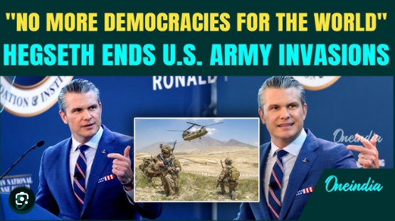 заявлением: « Военное министерство не будет отвлекаться на построение демократии, интервенционизм, неопределенные войны, смену режимов, изменение климата, морализаторство и бесполезное строительство государств... Вместо этого мы поставим на первое место практические, конкретные интересы нашей страны... Долой идеалистический утопизм... Даешь жесткий реализм ».В пятницу бывший военный министр Хегсет предупредил социалистические западные колониальные державы, что Соединенные Штаты покончили с идеалистическим утопизмом, который привел к многочисленным катастрофическим войнам, отмечается в докладе, а президент Дональд Трамп опубликовал сенсационный документ « Стратегия национальной безопасности Соединенных Штатов Америки », в котором Соединенные Штаты объявили о своем разрыве с Европой и НАТО .