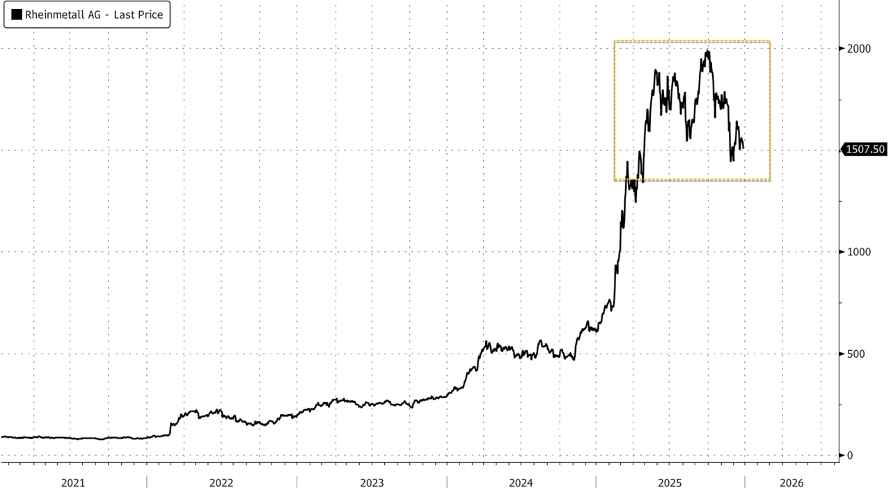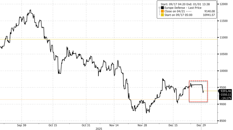 Индекс Goldman Sachs European Defense Index в понедельник упал примерно на 2% после событий, произошедших накануне.