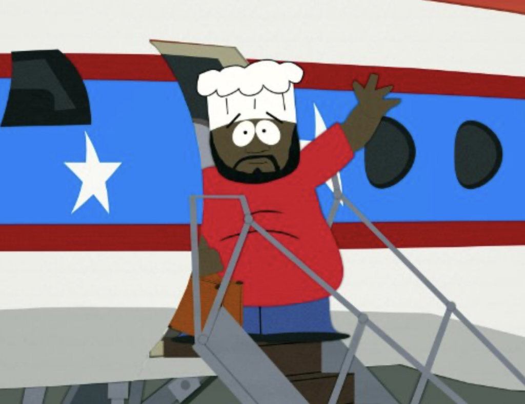 Речь идёт о 10 сезоне, 1 серии: «Возвращение Шефа» (вышел в эфир 22 марта 2006 года). На первый взгляд, она запомнилась как спорное прощание с персонажем Шефом (озвученным Айзеком Хейсом, который покинул шоу на фоне споров по поводу пародии на саентологию).