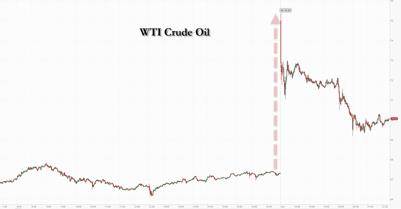 Обновление (22:00 по восточному времени): После первоначального роста на 13%, цены на нефть растут после того, как глава иранской службы безопасности Али Лариджани предпринял новую попытку возобновить ядерные переговоры с Вашингтоном, сообщили Wall Street Journal арабские и американские официальные лица . На момент написания статьи цена на нефть марки WTI колеблется около 4%.
