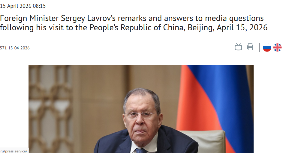 Для более подробного ознакомления с последним раундом российско-китайских переговоров между министрами иностранных дел Сергеем Лавровым и Ван И, состоявшихся в Пекине 15 апреля, приводятся выдержки из протокола МИД России, опубликованного вчера :