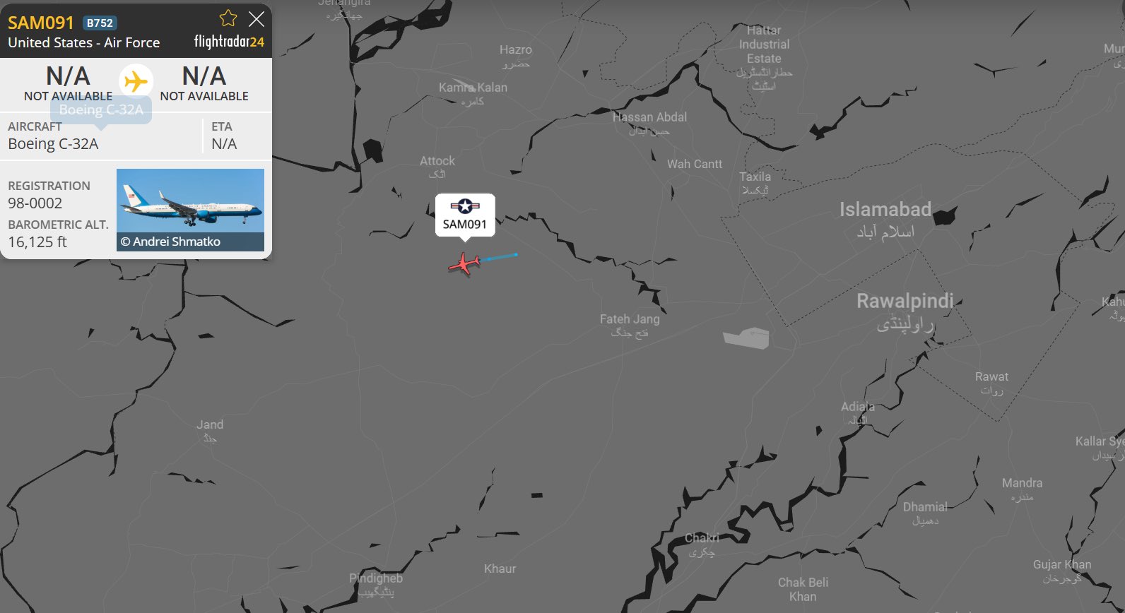 Самолет вице-президента вылетел из Пакистана и направляется домой в США.