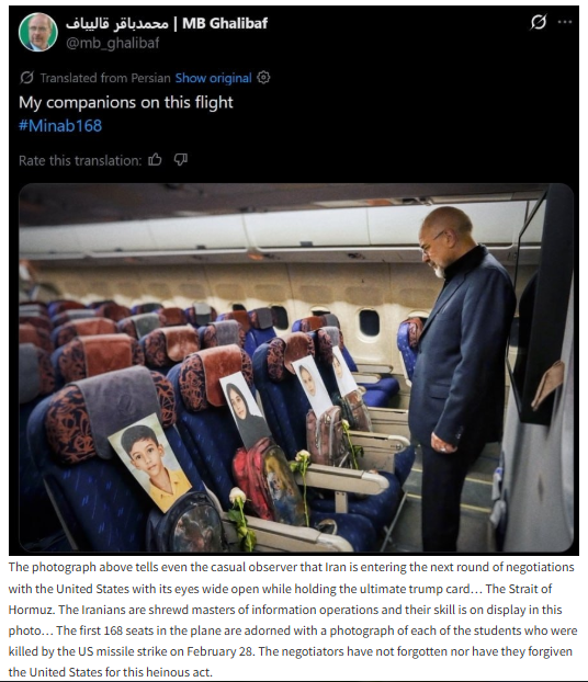 Сегодня в Кремле распространяется совершенно ошеломляющий новый доклад Совета Безопасности ( СБ ) , в котором сначала отмечается, что вице-президент Дж. Д. Вэнс прибыл в Пакистан со своей переговорной командой для переговоров с Ираном , а затем говорится, что иранская переговорная делегация во главе со спикером парламента Мохаммадом Бакхером Галибафом прибыла на эти переговоры ранее.