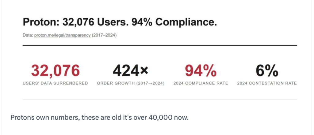 Компания Proton опубликовала в социальных сетях заявление: «Мы не предоставляли никакой информации».